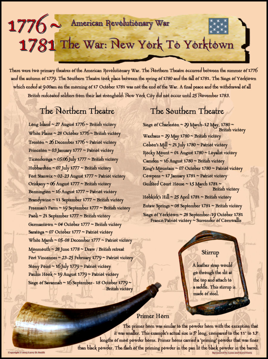 The exhibit consisted of American Revolutionary War artifacts from the collection of Larry D. Smith.